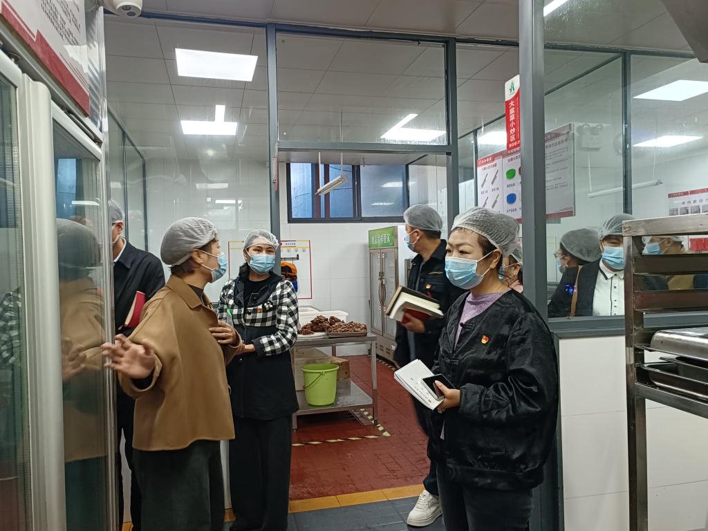 活动最后,全体人员前往梅园食代学生食堂后厨开展实地调研,重点查看食材采购验收记录、仓储环境、厨具消毒流程、食品加工操作规范等情况,现场听取食堂负责人关于食品安全管控工作的汇报,针对后厨管理细节提出优化建议,为进一步筑牢校园食品安全防线提供实践支撑。